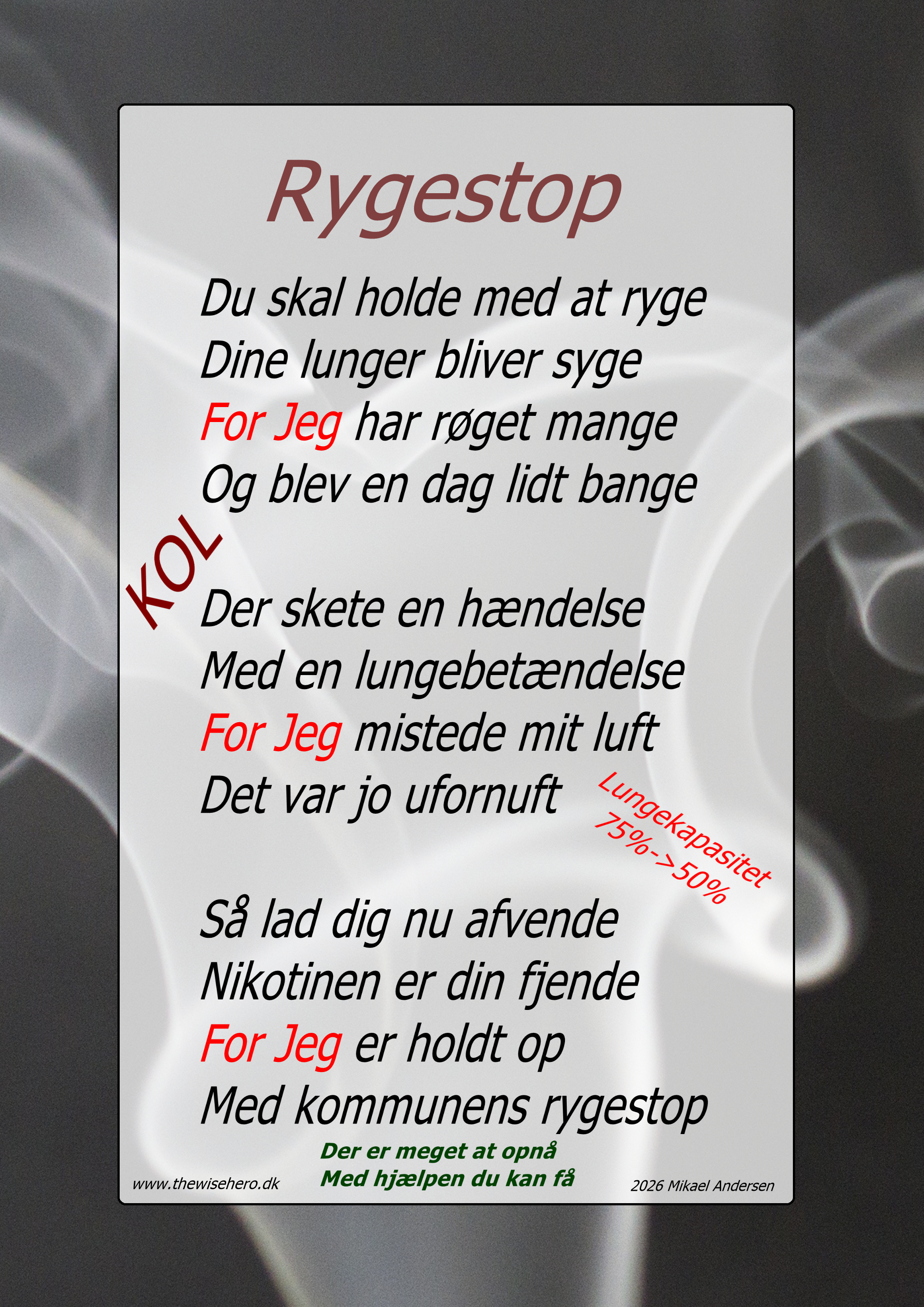 Forfatter kommentar: Omkring 2015 fik jeg konstanteret KOL og været medicineret. Og siden da har jeg været til årlig kontrol